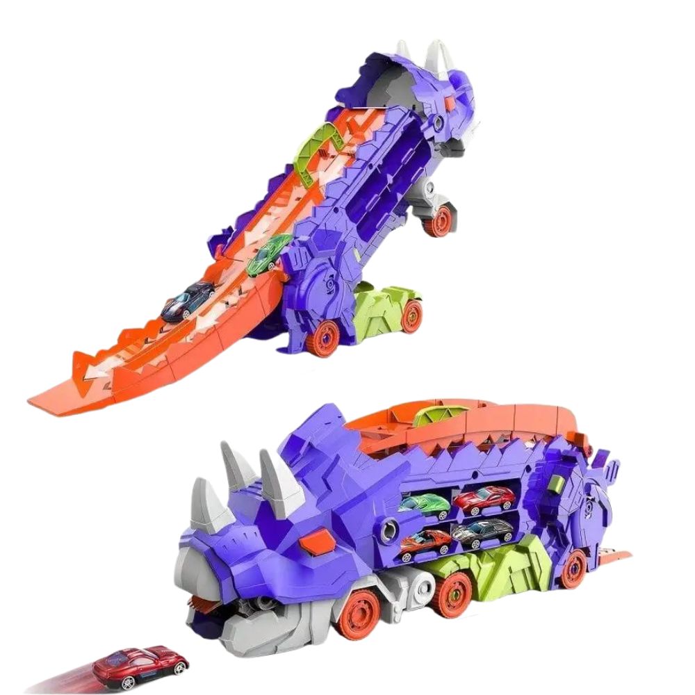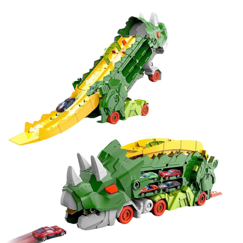 Ensemble de piste de course coulissante pour transporteur de dinosaures comprenant 2 voitures en alliage métallique