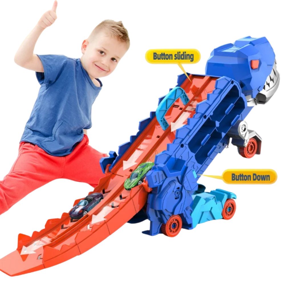 Vivez l'expérience de jeu ultime avec l' ensemble de rails coulissants Dinosaur Transporter, qui se transforme facilement d'un camion de transport cool en un dinosaure debout. Parfait pour les enfants qui aiment l'aventure, les courses et les dinosaures !