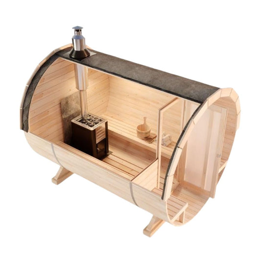 FinnTherm Saunafass 'Carrie' für Außen mit 2 Sitzbänke aus Holz | Wandstärke: 42mm