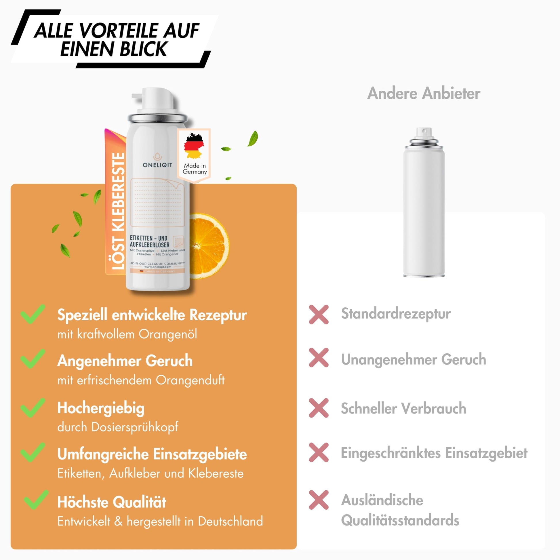 ONELIQIT® Etikettenentferner mit Orangenöl (200ml): Aufkleber, Vignetten, Klebstoffen