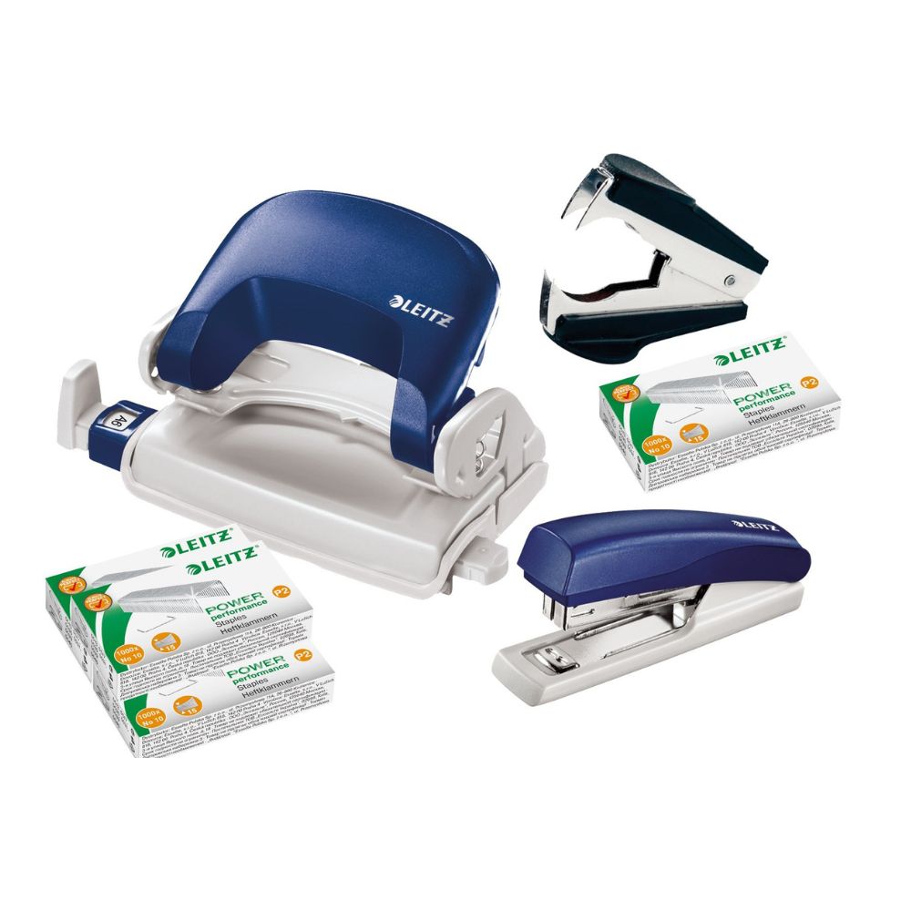 Leitz (5507) Punch and Hole Punch Bundle including storage clips and staple remover