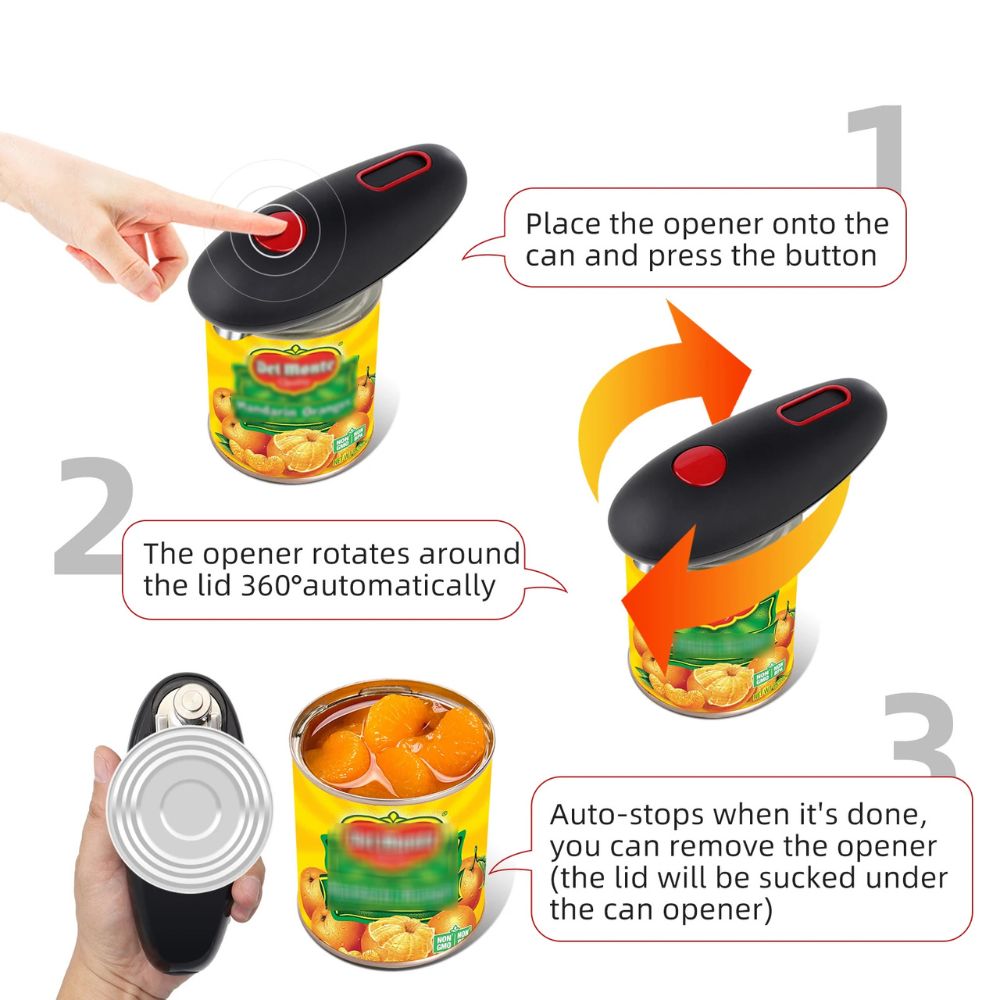 Convenient to use: With just the push of a button, the electric can opener opens any can effortlessly and stops automatically after opening. Suitable for cans of all sizes.