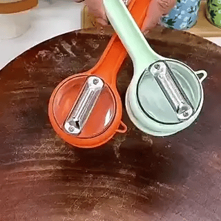 Discover the double-sided multifunctional peeler with storage box that makes peeling fruit and vegetables child's play.