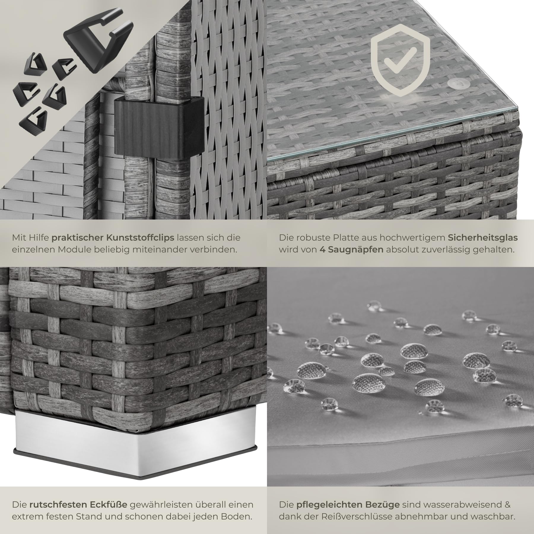 This modern lounge island adapts perfectly to your outdoor space —whether it's a balcony, terrace, or conservatory. Five individually combinable modules ensure maximum design flexibility.