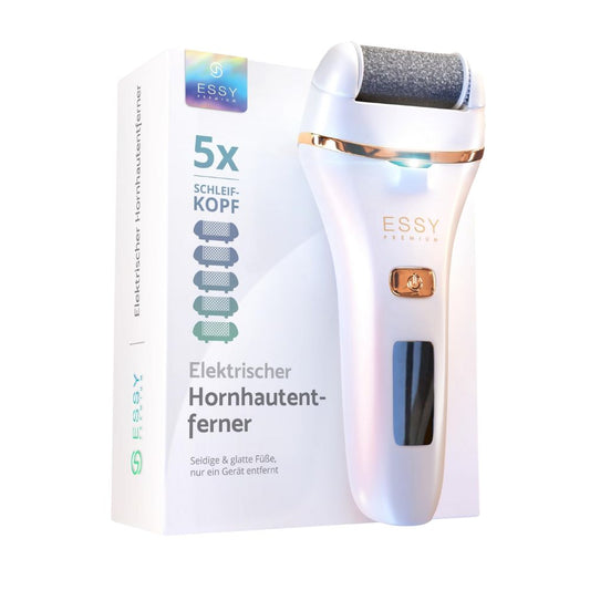 ESSY Elektrischer Hornhautentferner mit 5 Ersatzrollen: Fußpflege Hornhautfeile (Weiß)