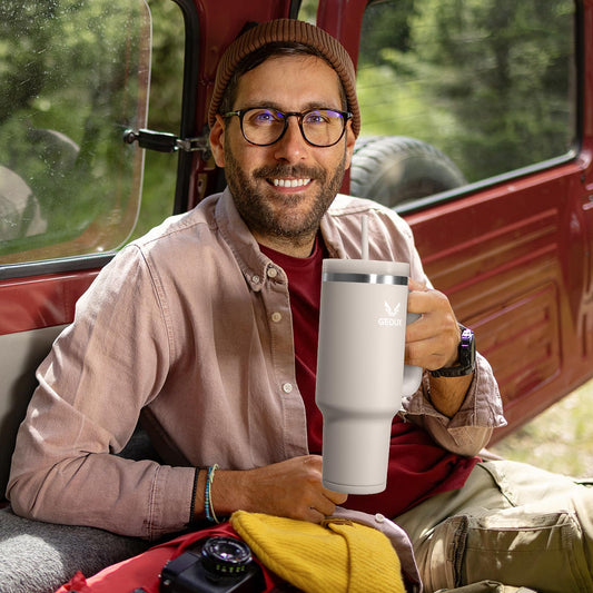 • Gedux Thermobecher (900ml) | 2-in-1 Edelstahl Trinkflasche mit Strohhalm