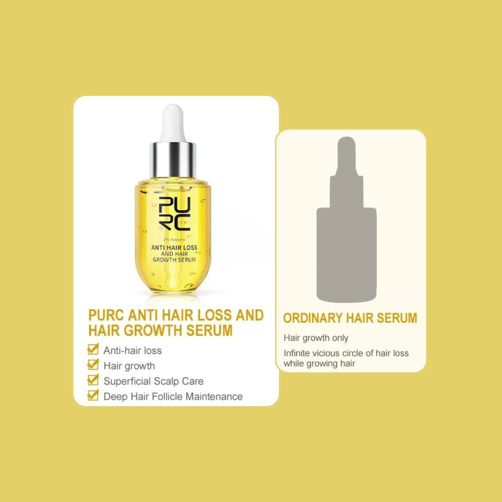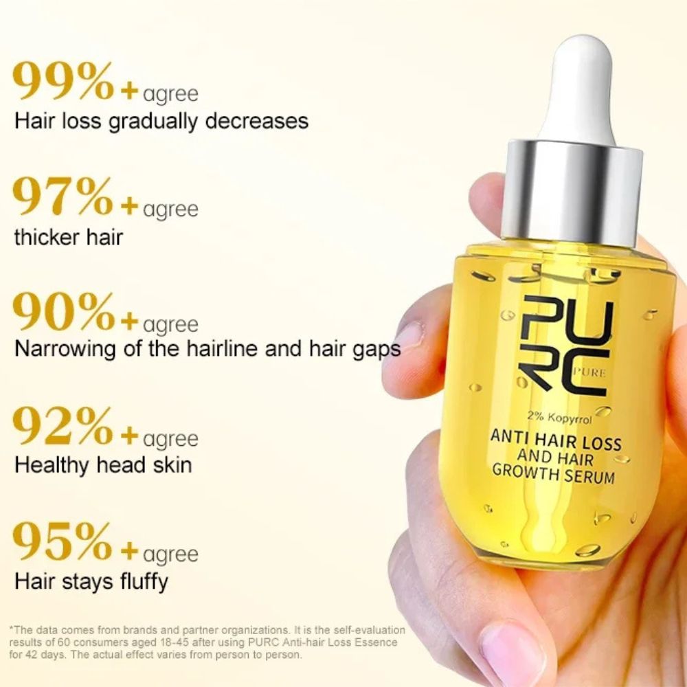 Sérum de croissance capillaire PURC (2% Kopyrrol) 5 ml | Huile Régénérante Contre la Chute des Cheveux, Traitement pour Hommes et Femmes