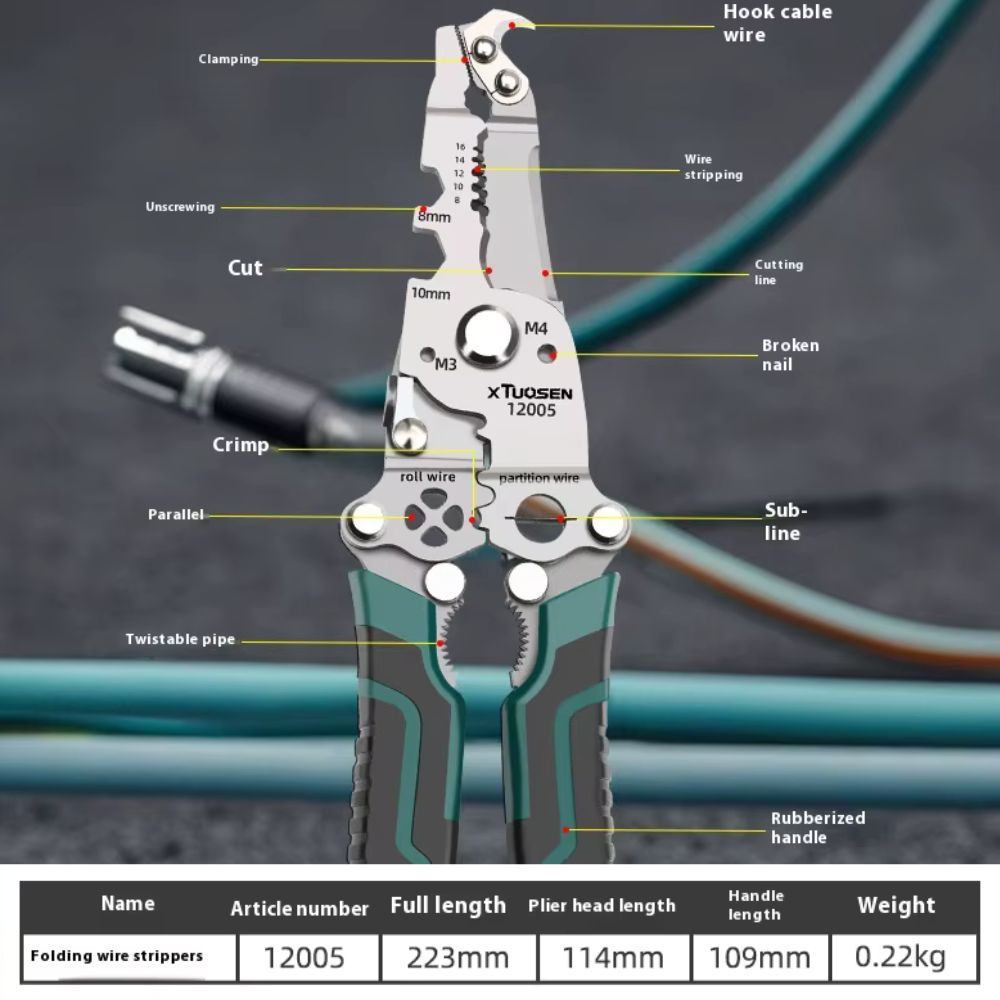 Pince d'électricien pliante multifonctionnelle 17 en 1 | Découpe, décapage, pressage, tirage, etc.