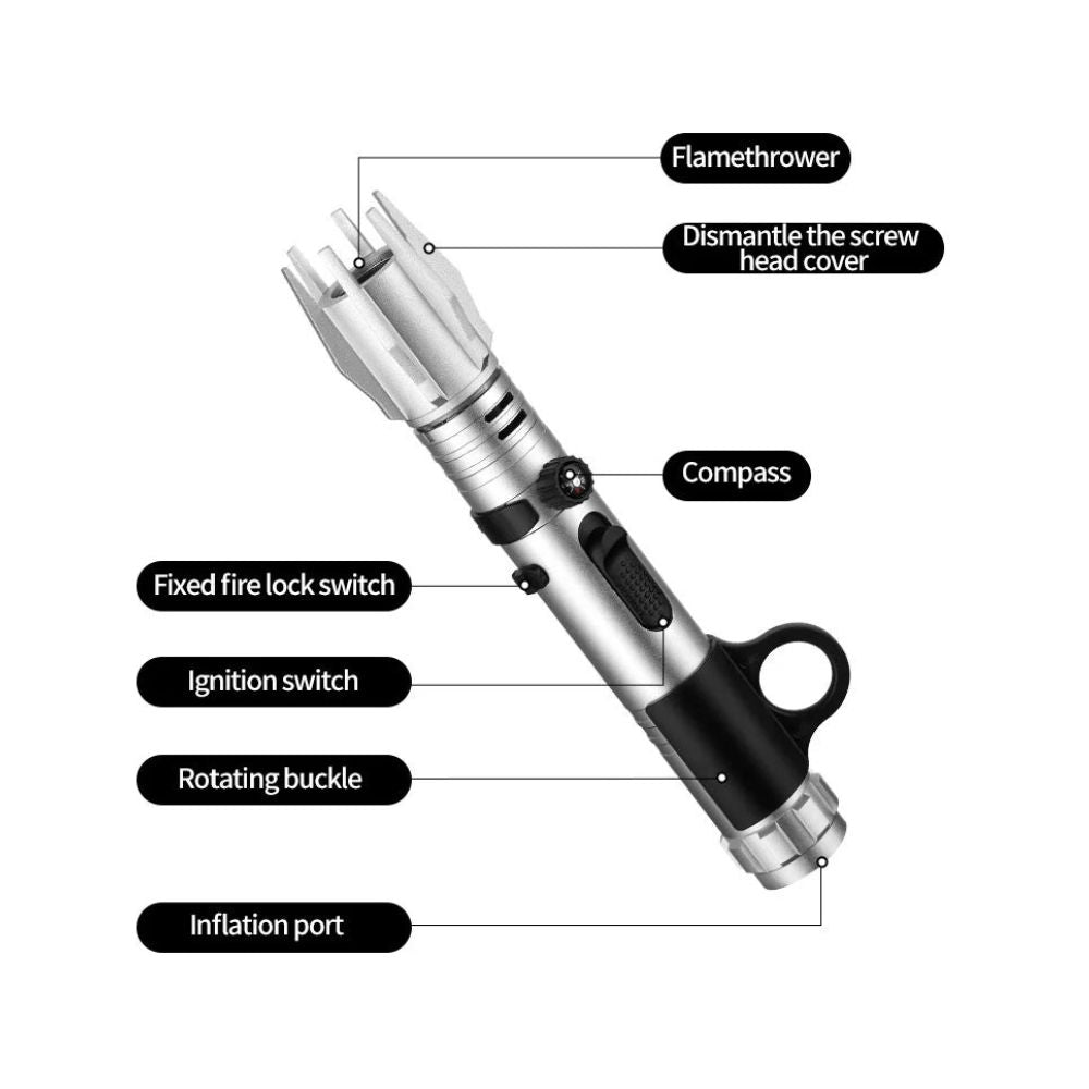Allume-flammes à jet de sabre laser en métal avec boussole | Briquet extérieur coupe-vent (GIF2)
