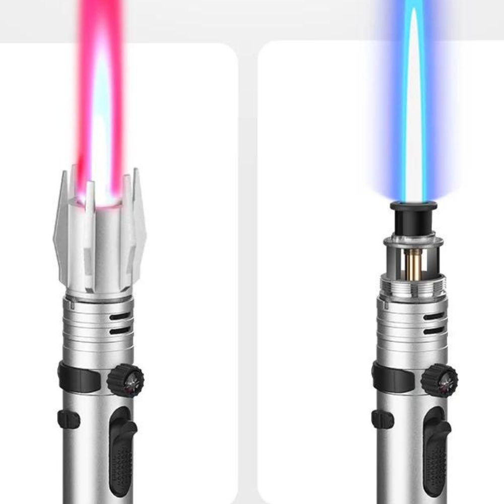 Ressemblant à un véritable sabre laser , ce briquet puissant et élégant produit des flammes puissantes et résistantes au vent qui allument les incendies en un instant , que ce soit au camping, au barbecue ou aux feux de camp.