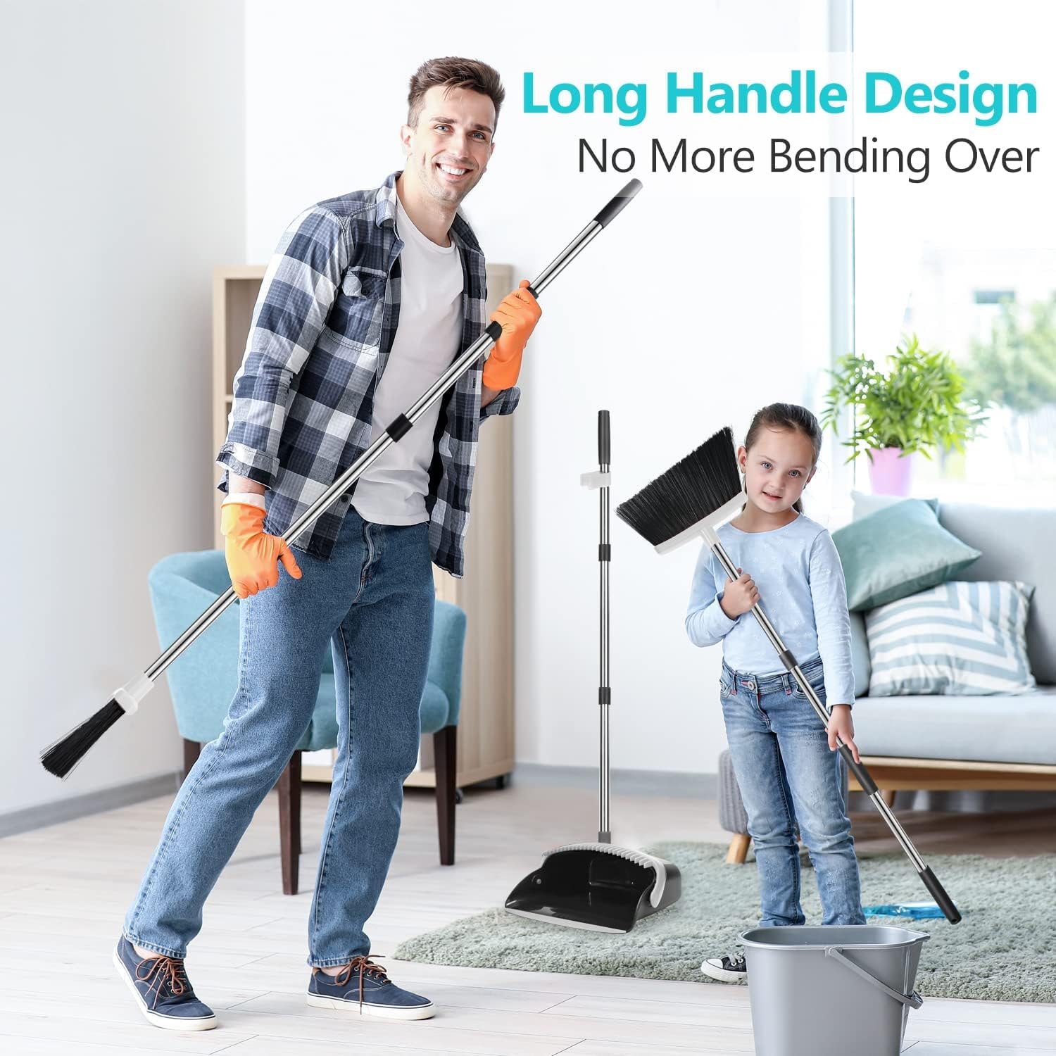 Besen und Kehrschaufel-Set | Combo mit 137cm Langem Griff für Küche, Haushalt