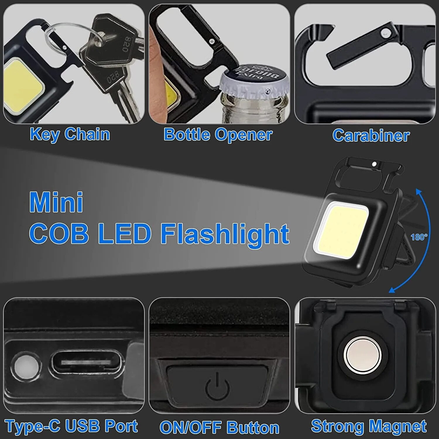 Haute luminosité : Avec une puissance impressionnante de 1000 lumens, cette lampe de poche porte-clés brille très fort et offre un grand angle de lumière. Grâce à la grande technologie LED COB, il peut également être utilisé comme petit éclairage de travail et de secours.