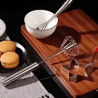 Fouet semi-automatique en acier inoxydable | Mélangeur à poussoir rotatif pour la cuisine et la pâtisserie (GIF2)