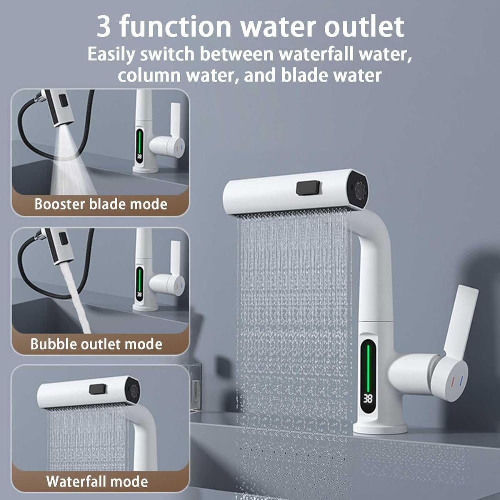 Robinet de cuisine cascade numérique LED : pivotant 3 en 1