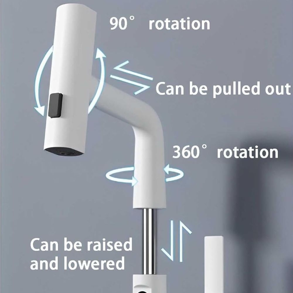 Conception réfléchie : ce robinet offre une rotation, une extension et un levage à 90° ainsi qu'un bras pivotant rotatif à 360° avec un tube extensible de 60 cm. Un robinet qui répond à tous vos besoins !