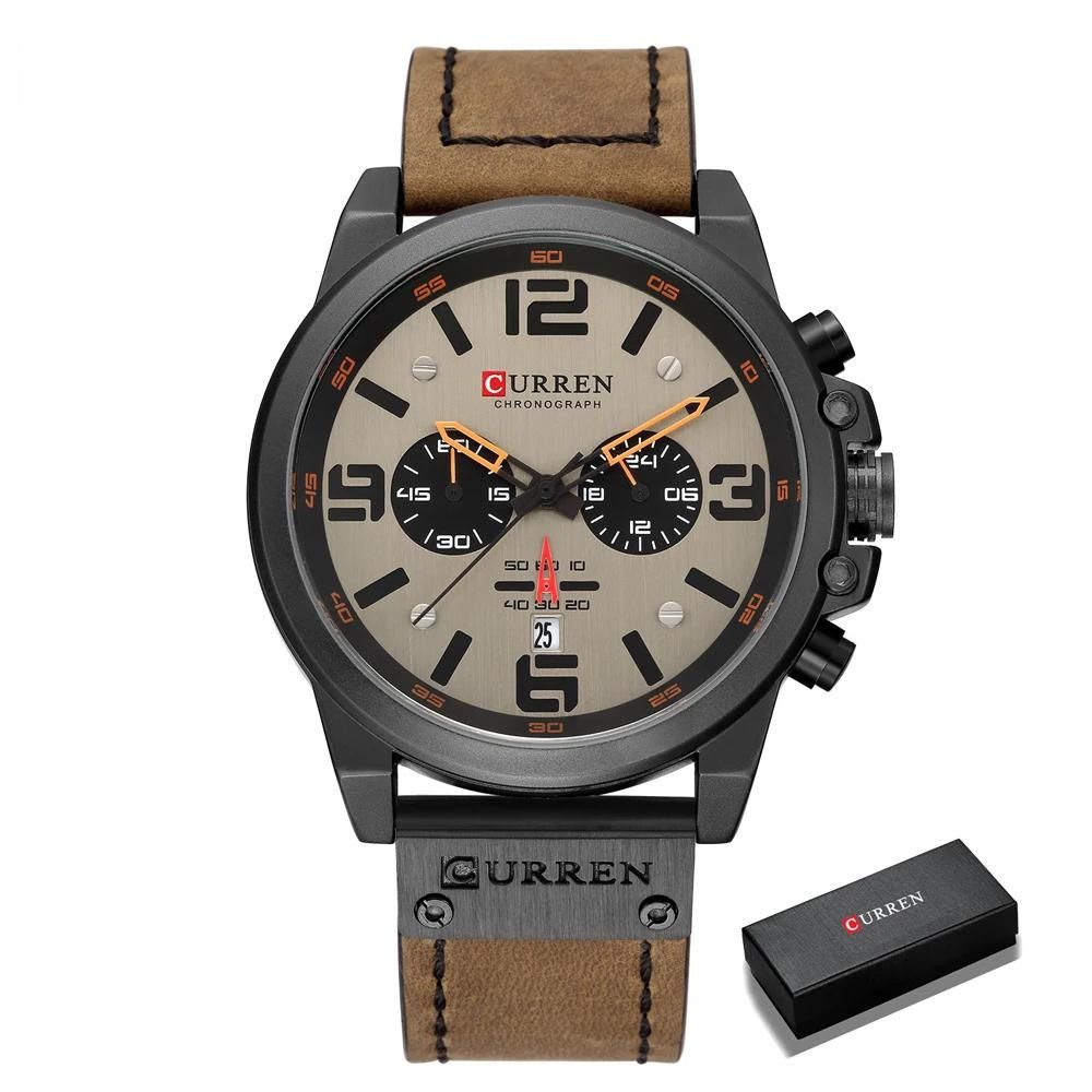 Montre à quartz chronographe de luxe CURREN pour homme avec bracelet en cuir