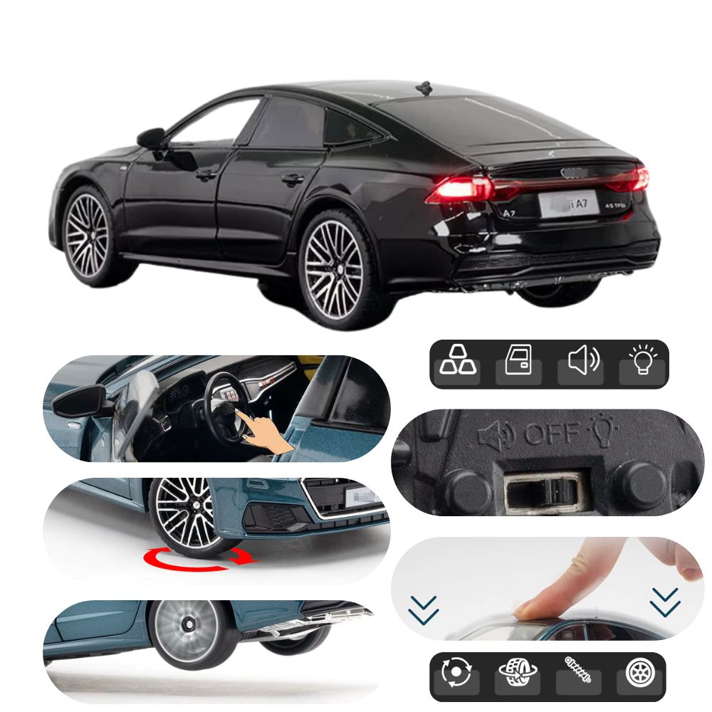 Modèle réduit de voiture Audi A7 (1:24) avec fonction de rétroaction, roues avant orientables, effets lumineux et sonores
