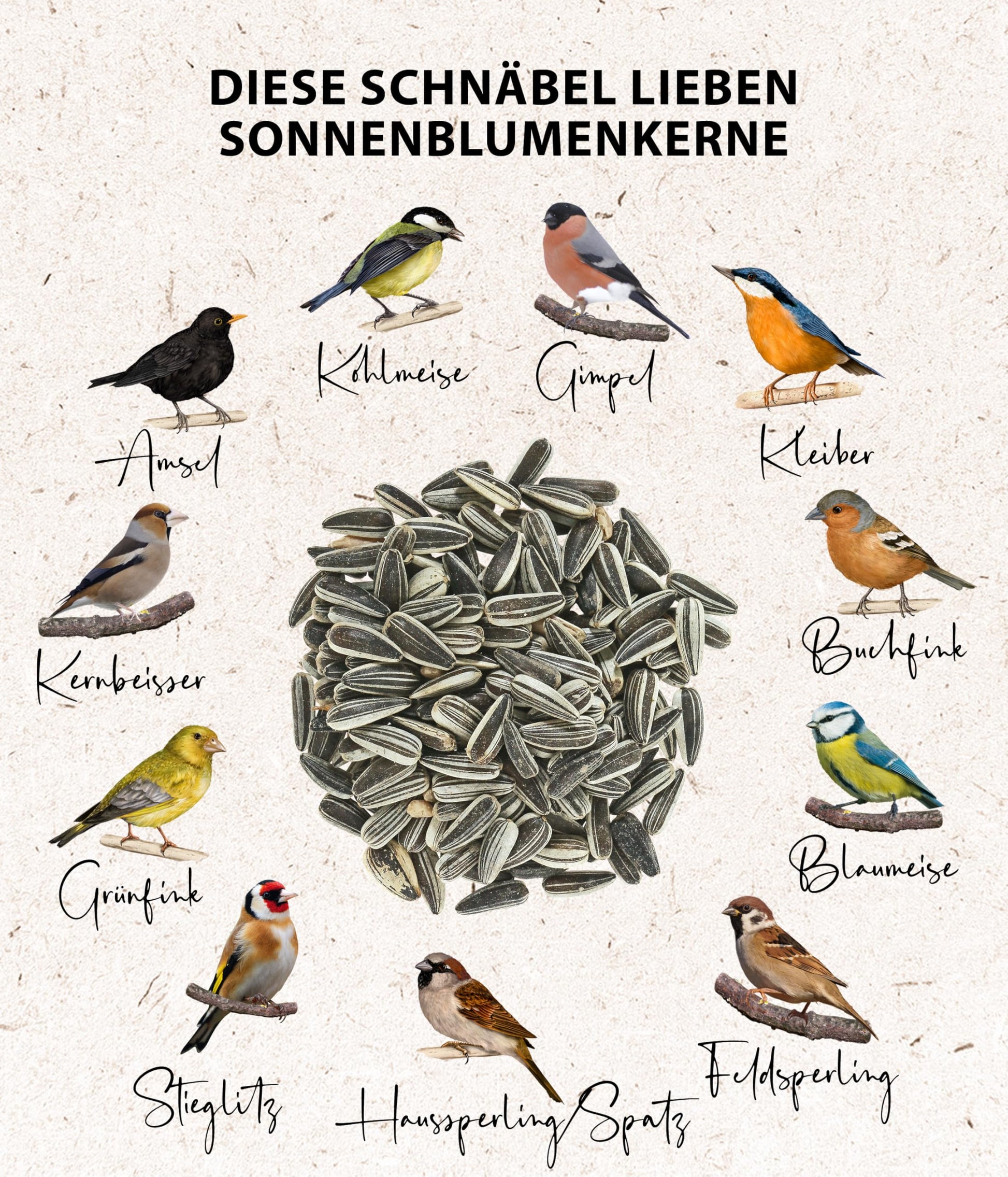 • Besonders beliebt bei Kohlmeise, Blaumeise und Grünfink