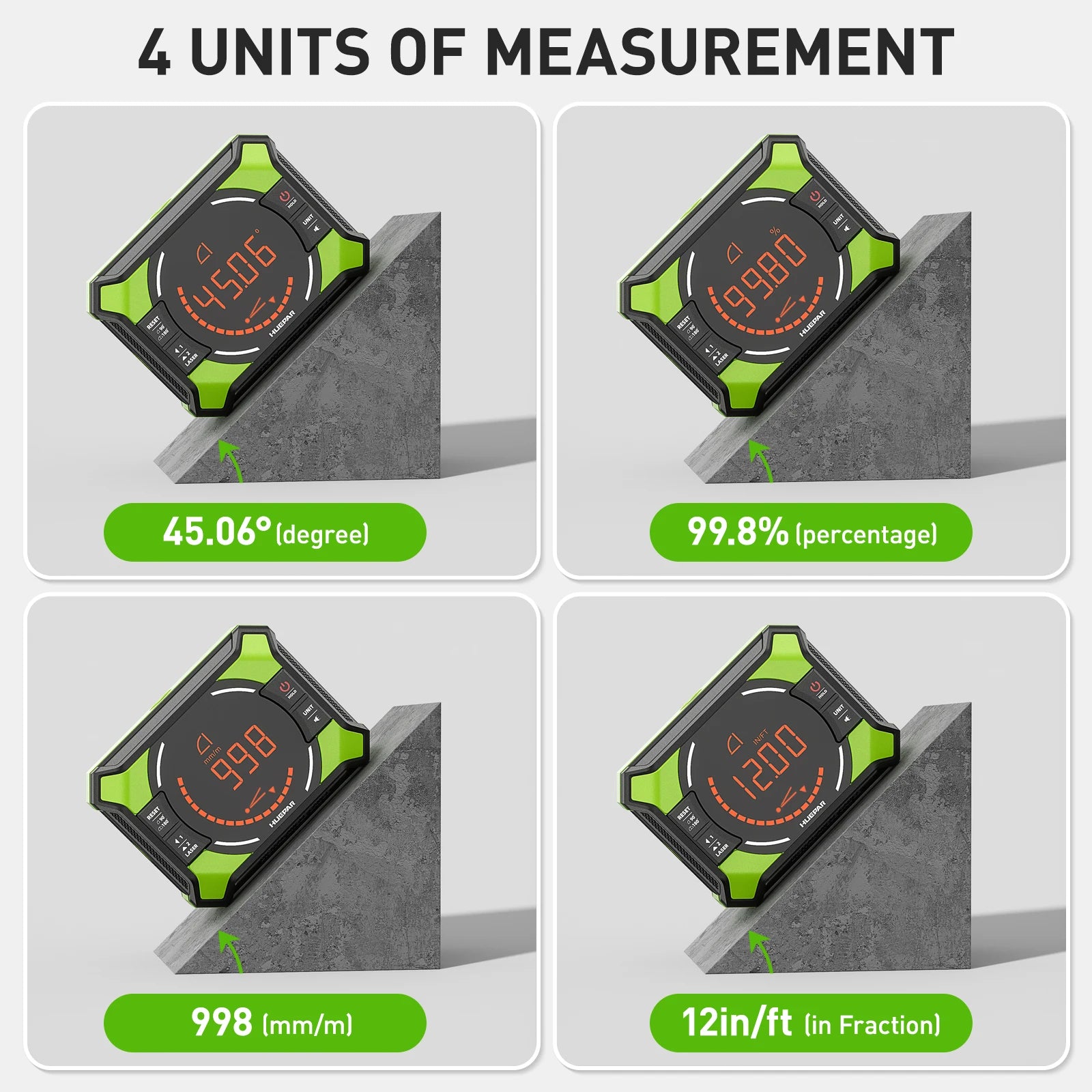Mesure absolue et relative : Deux modes de mesure vous permettent de vérifier facilement les angles absolus et relatifs. Parfait pour tous ceux qui ont besoin d'angles précis dans divers projets.