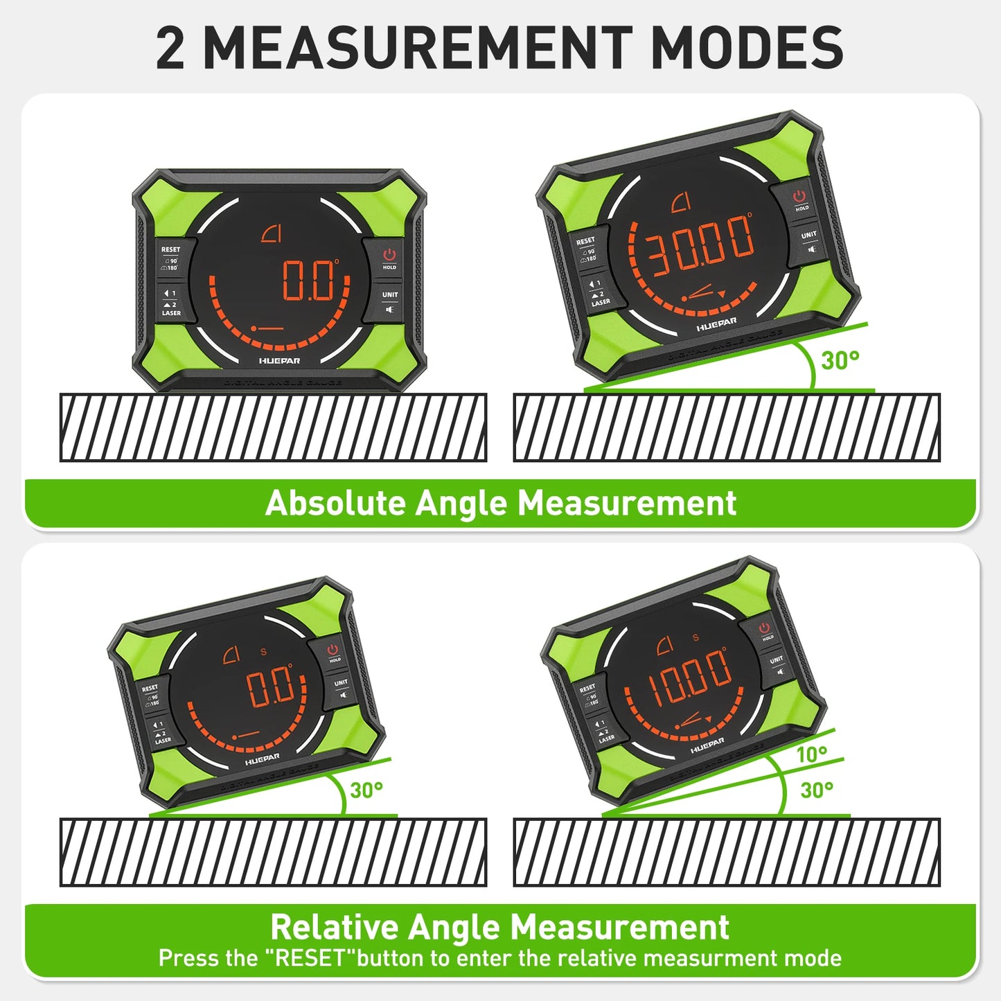 Huepar Rapporteur numérique 3 en 1 avec laser | Écran LCD et inclinomètre magnétique (GIF2)