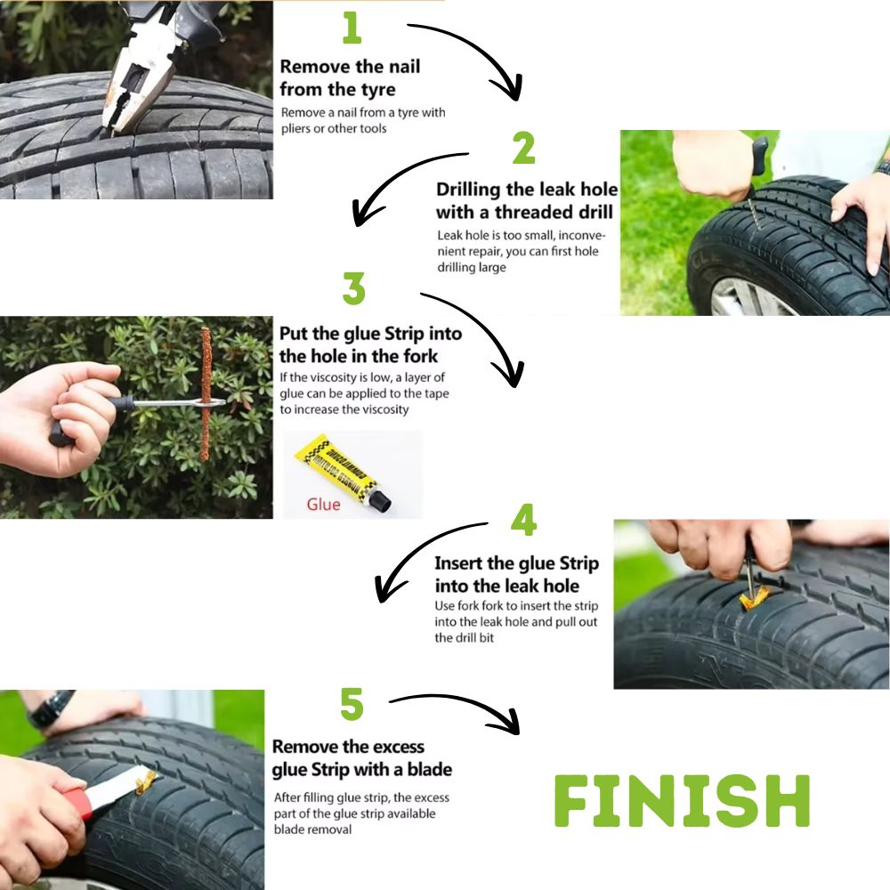 Kit de réparation de pneus sans chambre à air, kit de crevaison avec bandes en caoutchouc pour voiture, moto et camion