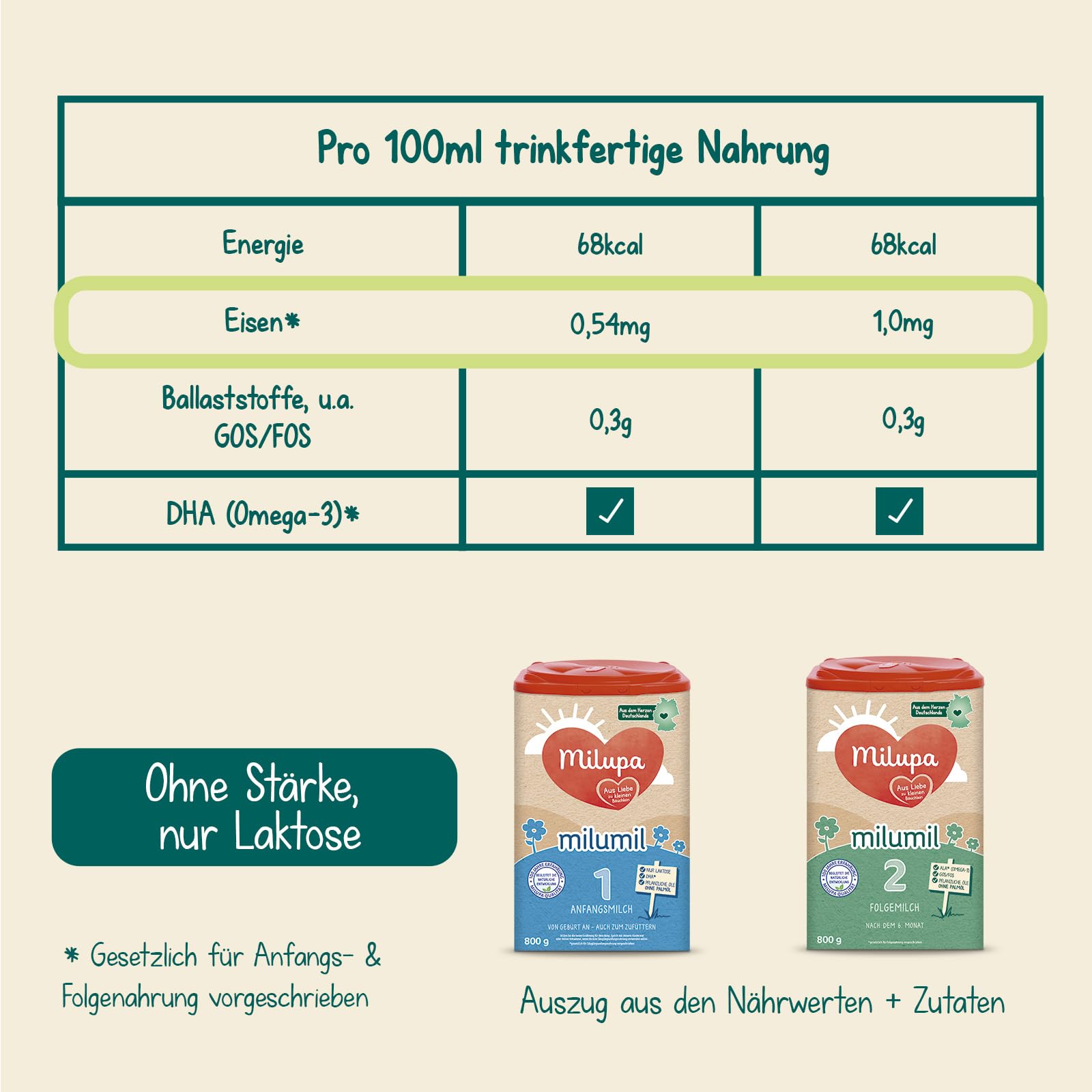 Milupa Milumil 2 Folgemilch (1x 800g) | Baby-Milchpulver nach dem 6. Monat