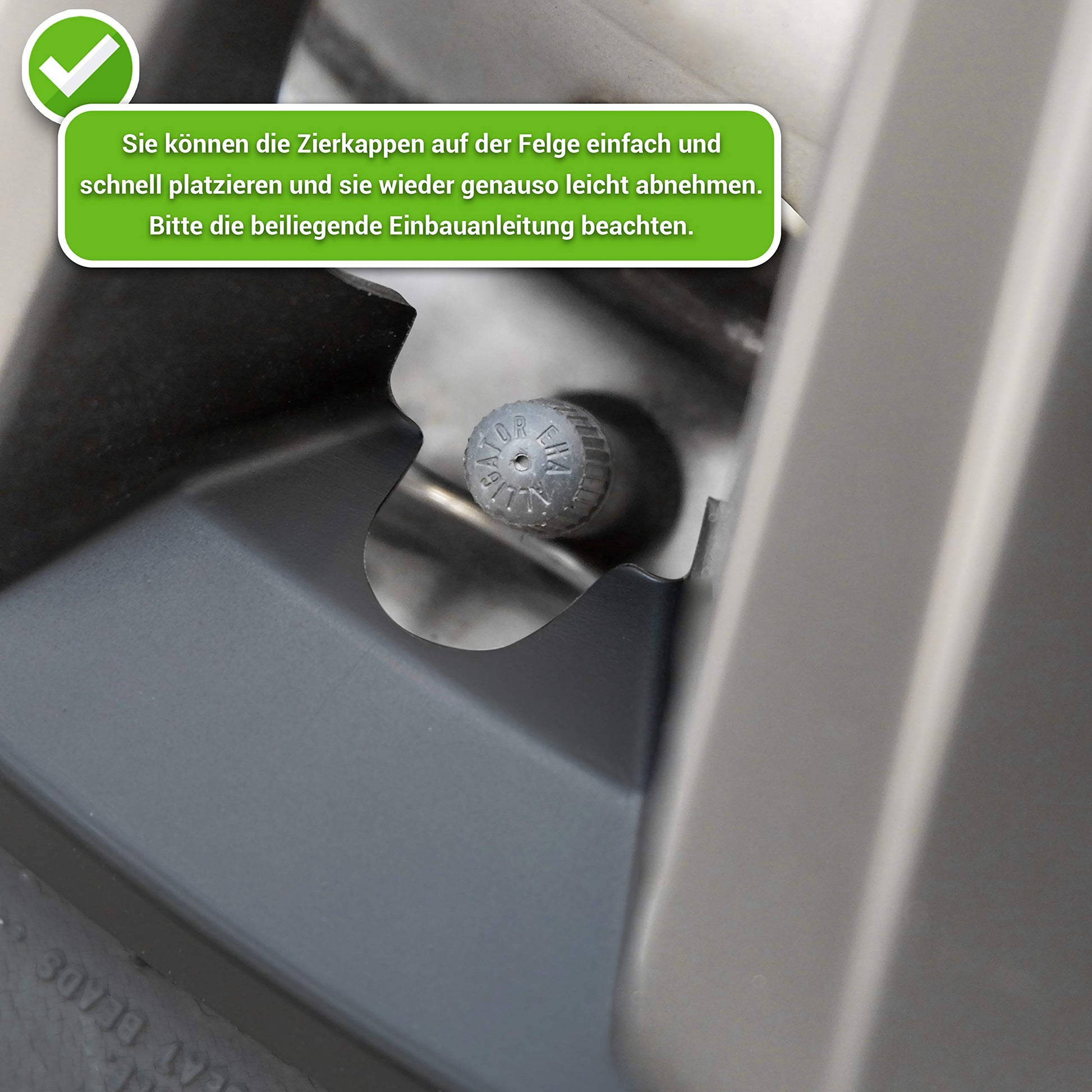 Lieferumfang: 4 identische Radzierblenden inkl. deutscher Anleitung.