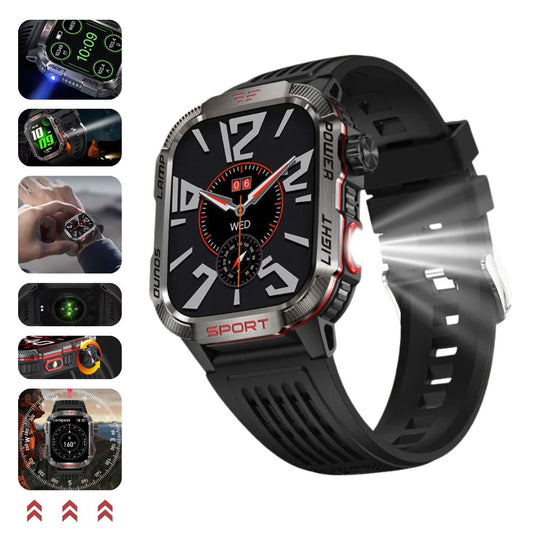 • Multifunktion Militär-Smartwatch | Outdoor-Fitness-Tracker: BT-Anruf, Geldscheinprüfung & Taschenlampe
