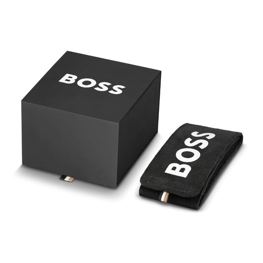 BOSS Chronograph Quarz Uhr für Herren (1513811) mit schwarzes Edelstahl-Mesh-Gliederarmband