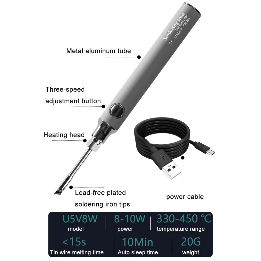 Fer à souder USB sans fil (8-10W) avec fonction de charge rapide | Portable, batterie au lithium, emballage d'origine