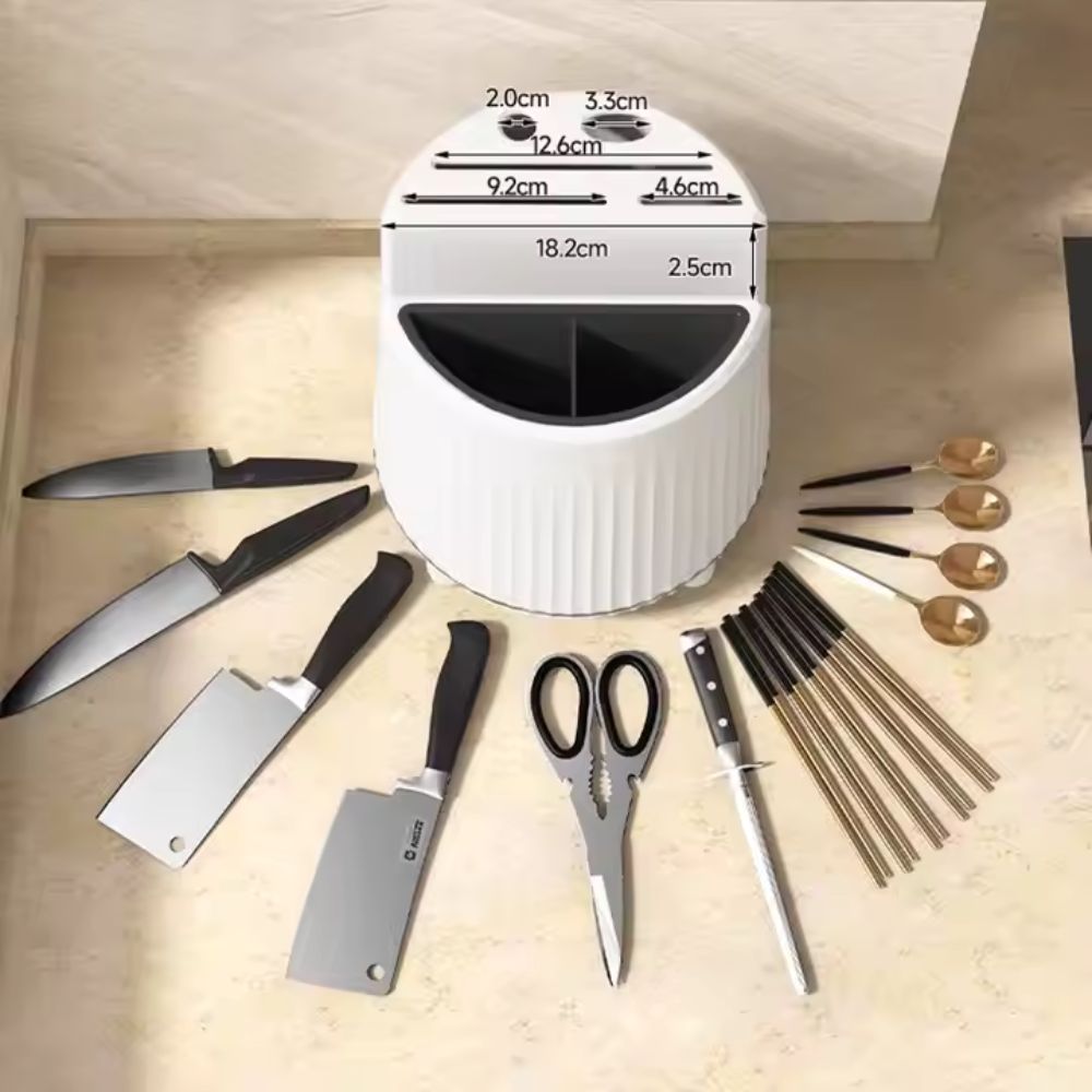 Maximisez l'espace de votre cuisine avec ce porte-couverts rotatif à 360°, peu encombrant et élégant. Idéal pour les petites cuisines ou les placards limités, il assure l'ordre et la fonctionnalité sans occuper un espace précieux.